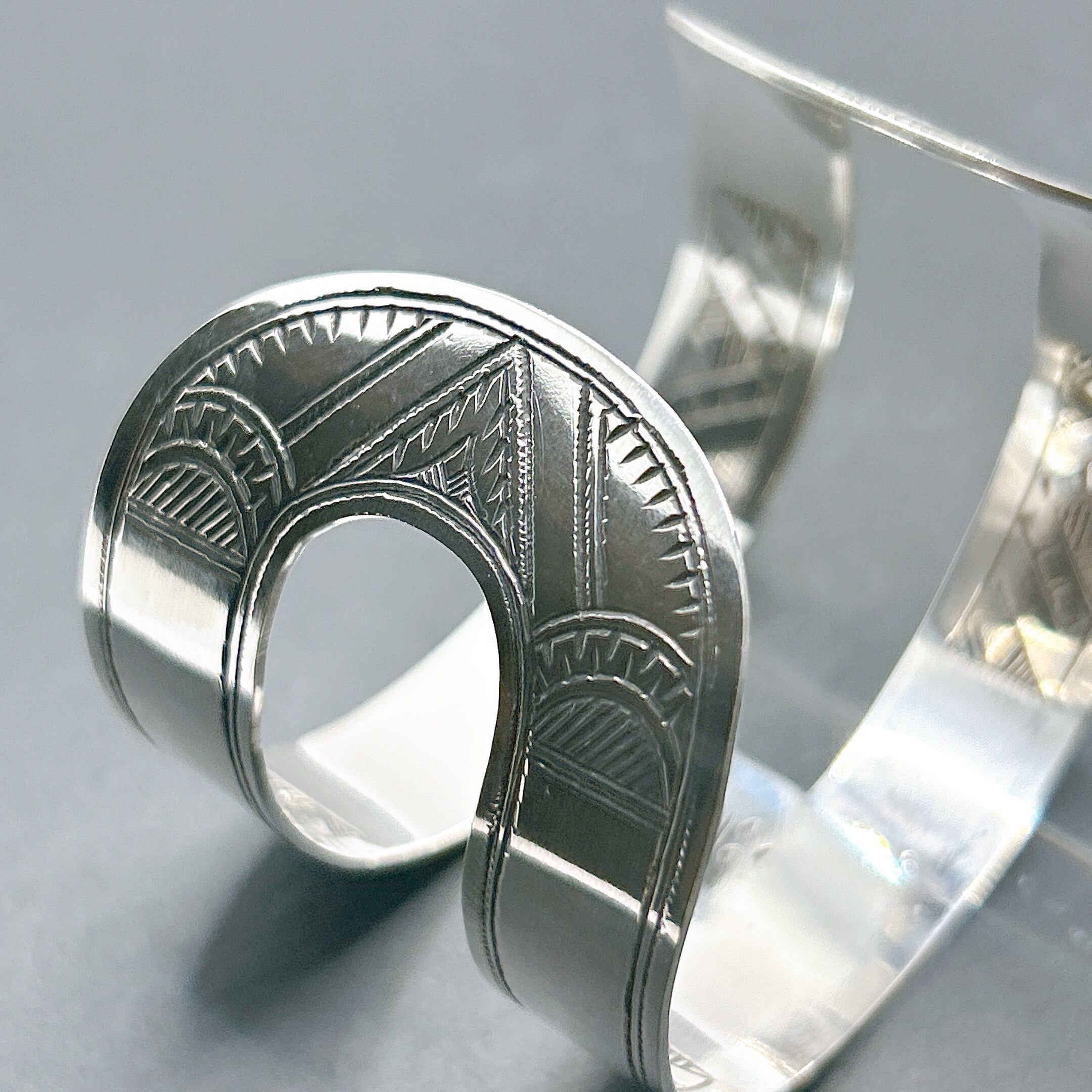 裏面にも丁寧に彫刻が施された、バングルとなります。